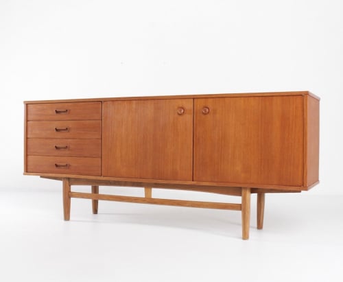 This elegant piece showcases the clean lines and warm wood grain typical of its era. It offers ample storage for your dining or living area. The condition is excellent, with only minor signs of its past life. A perfect example of timeless mid century modern furniture consignment. Its compact size makes it versatile for various spaces.